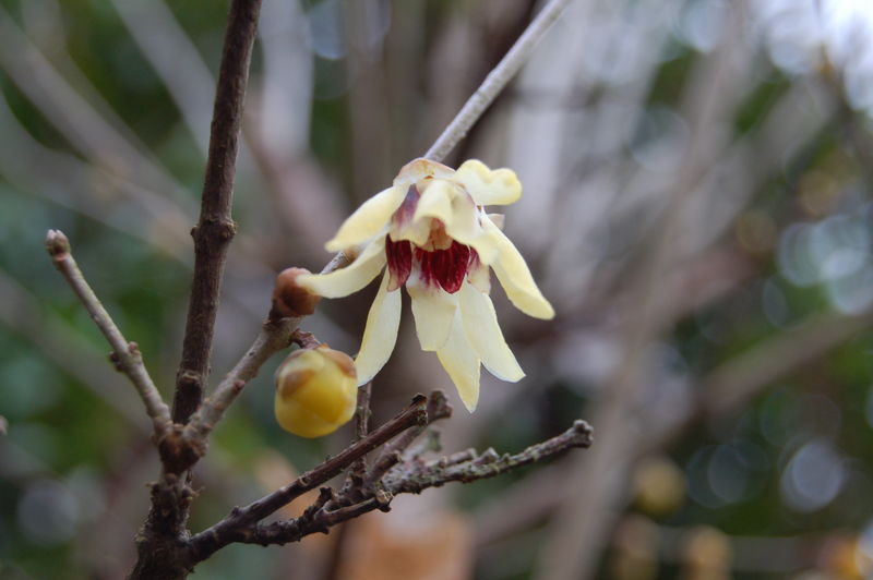 Hier schon mehrfach gezeigt: /*Chimonanthus praecox*/ neigt zu unschönem, sparrigen Wuchs. Habe sie daher im letzten Jahr um gut 1,5m gekürzt