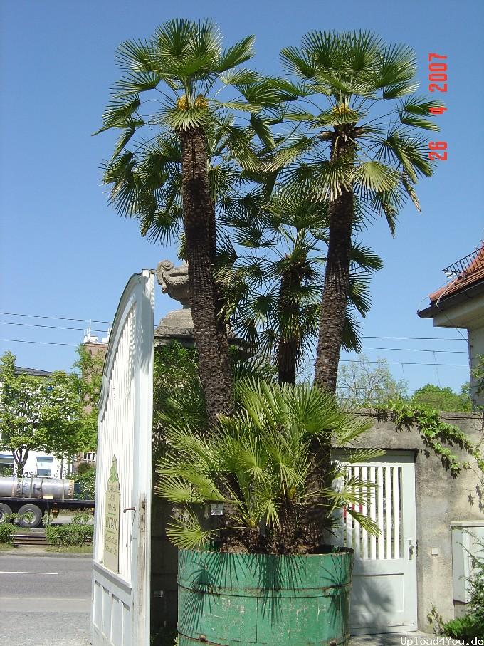 Am Eingang wird man gleich von diesen gewaltigen Topf-Chamaerops begrüßt.