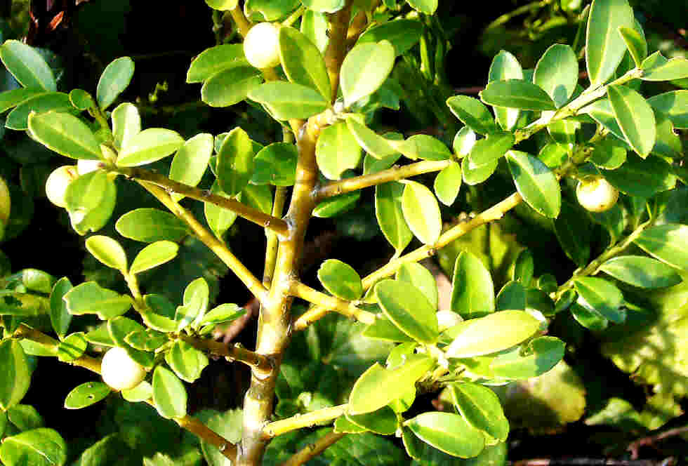 ..aus denselben Gründen wie bei der vorigen Ilex-Sorte ist auch die gelbweißfrüchtige /*Ilex crenata ‚fructu luteo’*/ noch mit „Beeren“ behangen.
