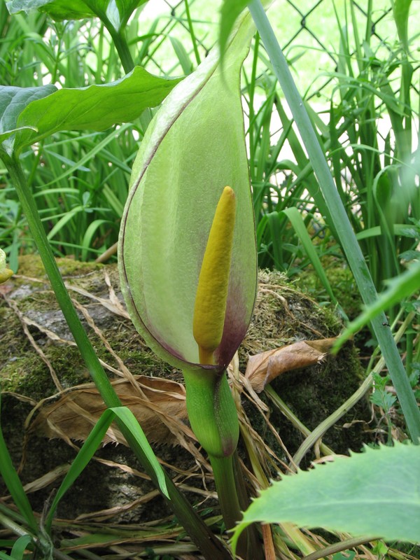 ist das wohl ??? Vor Jahren einmal als kleiner Sämling gepflanzt blüht er nun mit großer breiter Spate mit etwas rot im Schlund.