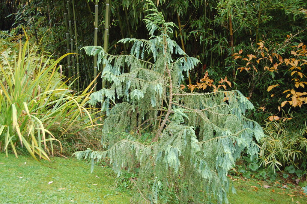 /*Taiwania cryptomerioides*/ vor den rotbraunen "Resten" der Koreanischen Scheinkamelie #AM