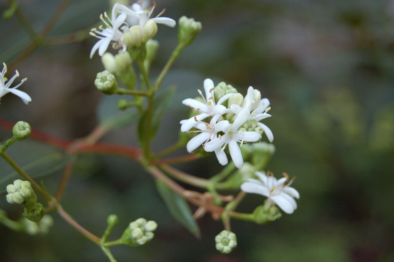 /*Heptacodium miconoides bzw jasminoides*/ eines der sehr spät im Jahr blühenden Gehölze, nimmt allmählich Baumcharakter an
