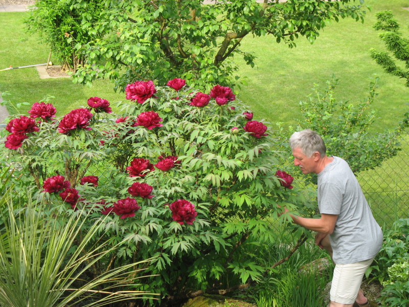 Immerhin hat sie Erinnerungswert. Als ich vor 18 Jahren bei einer Reise der EBS den einzigartigen Garten von Sir Peter Smithers am Lago Lugano besuchen durfte mit seiner traumhaften Strauchpaeoniensammlung, habe ich mir ganze 2 besonders auffällige Sorten aufgeschrieben. Praktisch, dass im Anschluss die Gärtnerei Eisenhut angesteuert wurde - und dort fand sich eine dieser beiden Sorten, als fingergroße frische Veredlung.