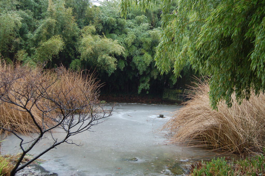 einfach toll sieht dieser Bambushain am zugefrorenen Weiher aus (/*Fargesia spez.*?/)