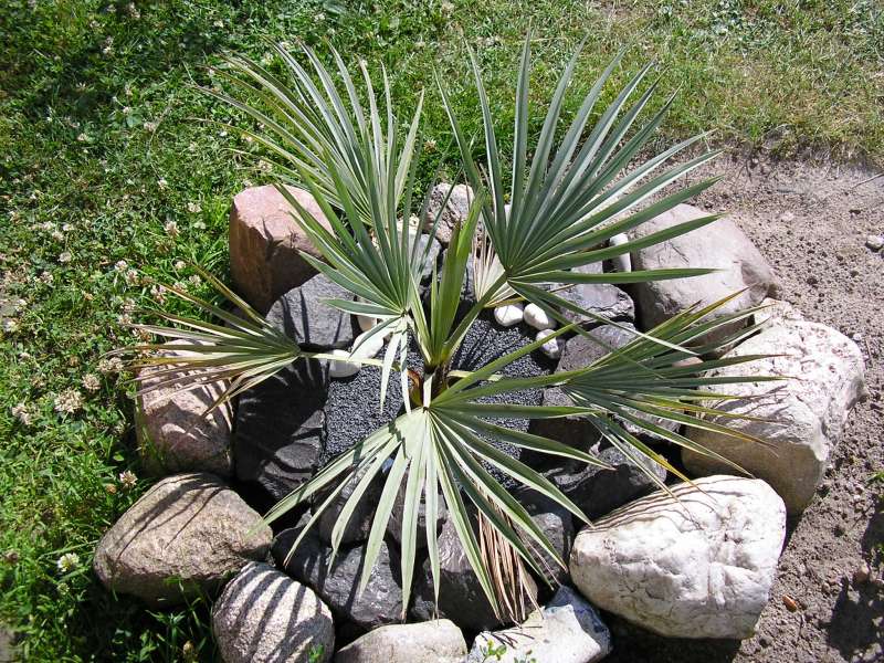 ja, so gefällt es der kleinen Brahea armata, unter intensiver Sonne im Steinkreis glühend ;-)