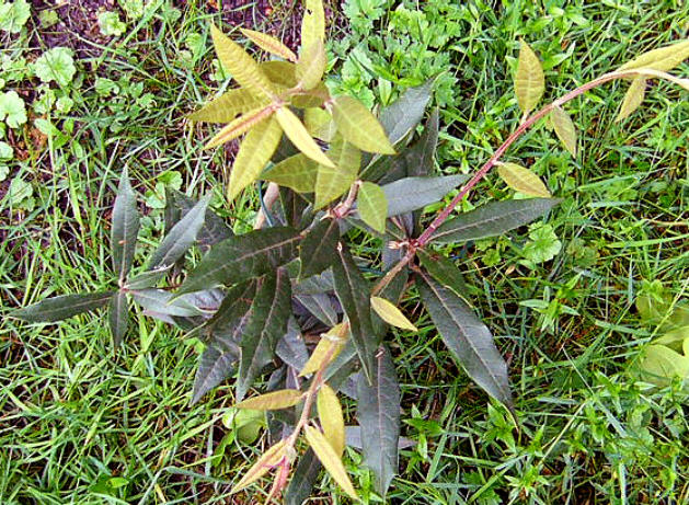 Die Silverleaf Oak (/*Quercus hypoleucoides*/) aus dem suedlichen Nordamerika ist eine wunderschoene immergruene Eiche mit schmalen, unterseits graufilzigen Blaettern. Ich bewunderte sie zuerst im Garten (Park) von Jost, und sie war fuer mich ein unbedingtes Habenmuss. Das Exemplar ist noch klein und wurde erst in diesem Fruehjahr ausgepflanzt.