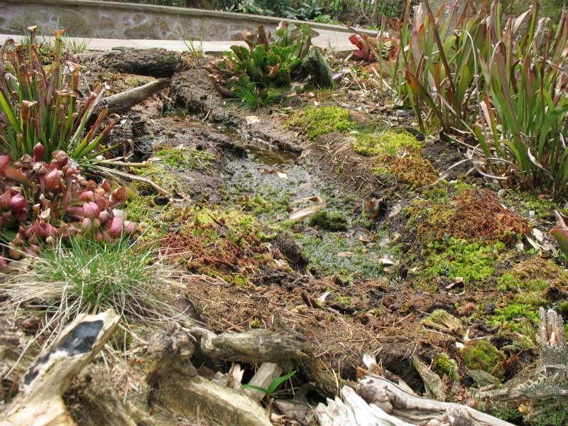hat den Winter gut überstanden. Braune Schläuche bei den Sarracenien sind wohl altersbedingt und erfordern evt. etwas Kosmetik. Das eingebrachte Torfmoos entabliert sich trotz Amselatacken und wird wohl in Zukunft Torfgaben unnötig machen.
