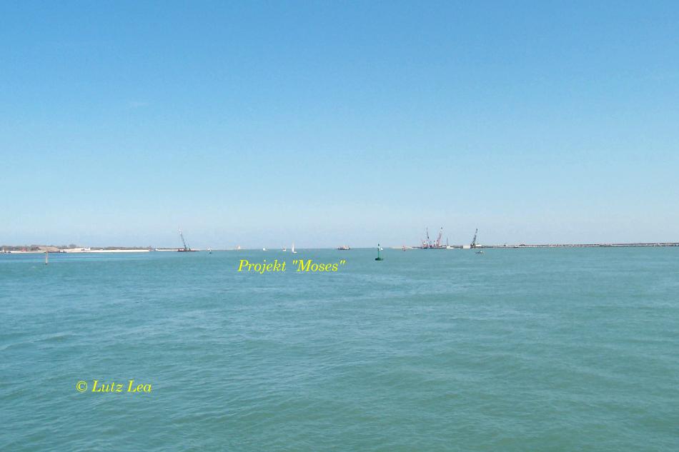 Im Hintergrund das große Projekt "Moses" mit den Baumaßnahmen der schleusentore zum Schutz vor "Aqua alta"