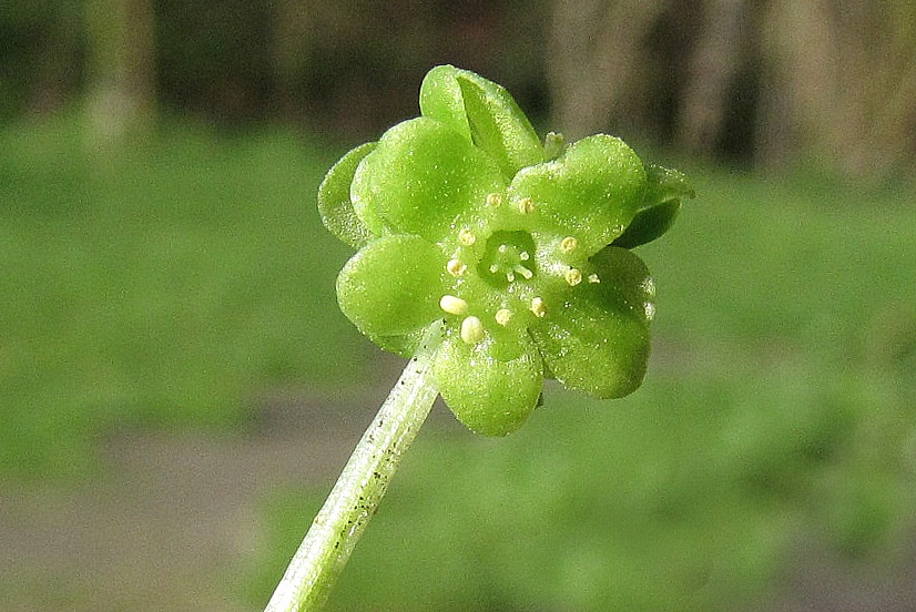 Das Unscheinbarste an Frühlingsblühern repräsentiert das Moschuskraut (/*Adoxa moschatellina*/). Der Blütenstand bildet einen Würfel, dessen 6. Seite vom Stiel eingenommen wird. Das Pflänzchen galt früher als Lehrbuch-Beispiel einer monotypischen Familie und monotypischen Gattung. Das heißt, die ganze Familie bestand nur aus Adoxa moschatellina. Später wurden noch ein paar weitere Adoxa-Arten entdeckt, und die neuere Molekularforschung hat die Adoxaceae nun gewaltig neu befrachtet. Unter anderem gehören der Holunder (Sambucus) und der Schneeball (Viburnum), ehemals Caprifoliaceae, heute zu dieser Familie.
