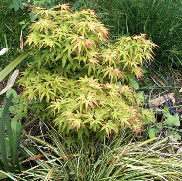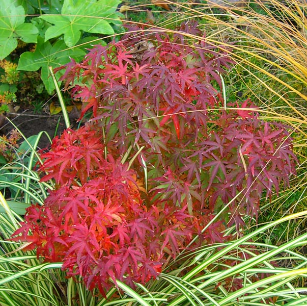 /*Acer pygmea*/ ende oktober und daneben bild von ende juni (andere kleinbleibende sehr langsam wachsende sorte)