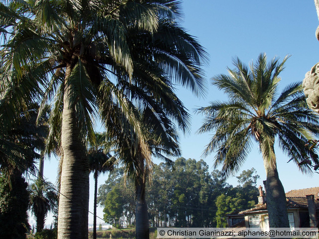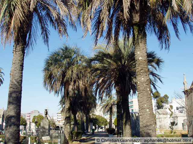 /*Butia capitata*/ Alte Exemplare auf dem Gelände des Friedhofes, darunter befinden sich hunderte von Sämlingen (auf dem Bild nicht sichtbar), die wir nächstes Jahr verpflanzen werden