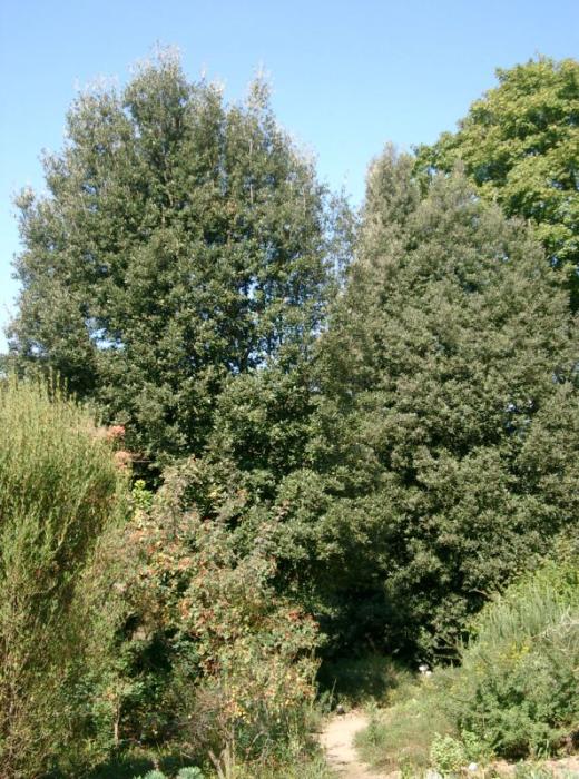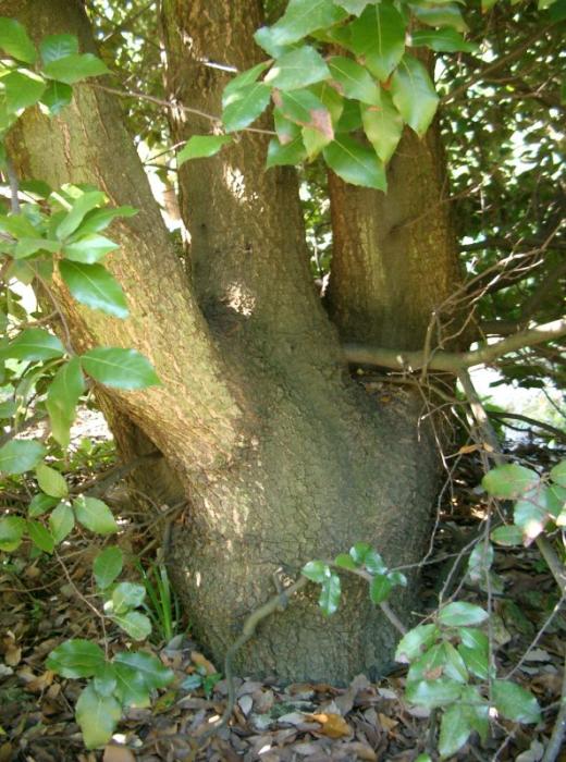 und auch große Steineiche mit mächtigen Stämmen. Ob sie in einem kalten Winter mal zurückgefroren sind, da sie mehrstämmig aus der Basis wachsten?