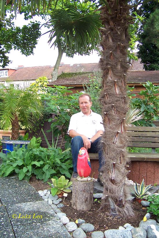 Hier ein Bild mit 'Eddi' unter seiner großen Trachy im Exotengarten in Schwanheim.