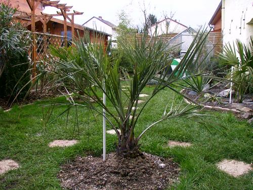 Die zur Auspflanzung vorgesehene 35jährige Butia capitata wird ihr Dasein nun doch,auf Wunsch meiner Frau, als Kübelpflanze in unserer Einfahrt verbringen;ist natürlich ein Hingucker.