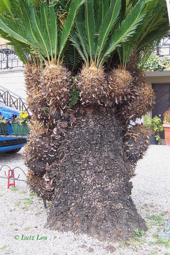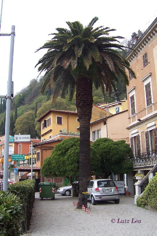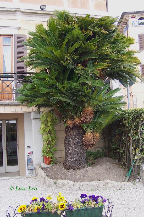 Wenn man von 'Limone' die Uferstraße weiter gen Süden fährt, gelangt man in den Ort 'Toscolano Maderno'. Hier sind mir im letzten Jahr bei der Durchfahrt zwei ältere markante 'Phoenix canariensis' Palmen und zwei stattliche 'Cycas revoluta' (Palmfarn) aufgefallen.