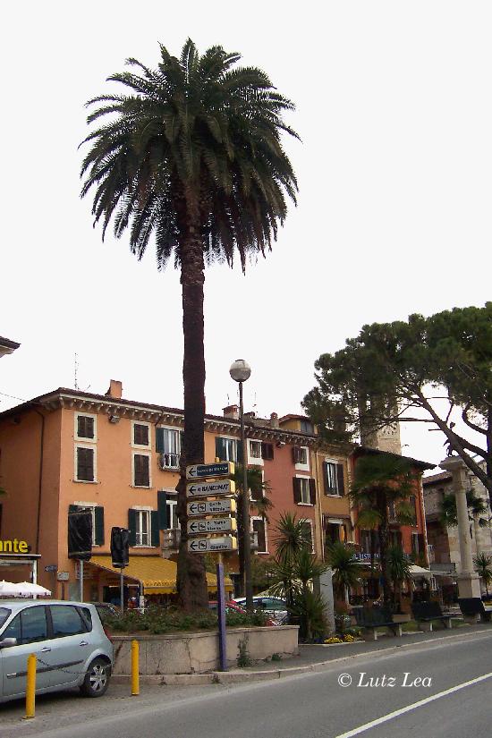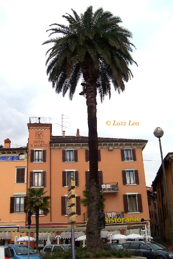 Noch höher ist diese zweite Phoenix-Palme im Ort am Hafen 'Toscolano M.'!