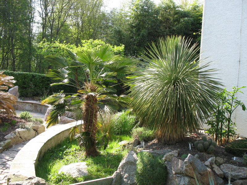 Ich werde mich wohl erst ans neue Gartenpanorama gewöhnen müssen. Die Yucca thompsoniana war unten recht schlank und lies jede Menge Platz für Sukkulenten zur Unterpflanzung. Die neue Y. liniarifolia bringt selbst den ursprünglich gut auf Abstand gepflanzten Dracunculus vulgaris in Bedrängnis.