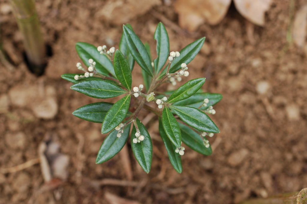 /*Zieria arborescens*/ als immergrünes Gehölz im Unterholz der tasmanischen Eucalyptuswälder wachsend. Wie hart sie ist, weiß noch keiner so genau??