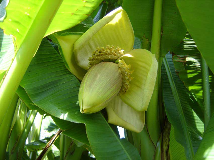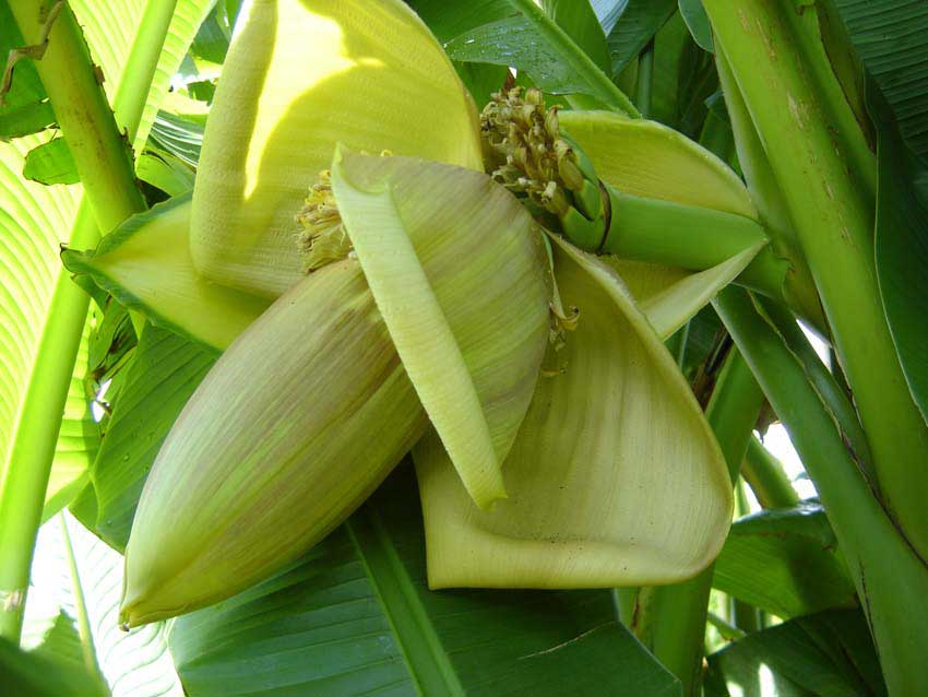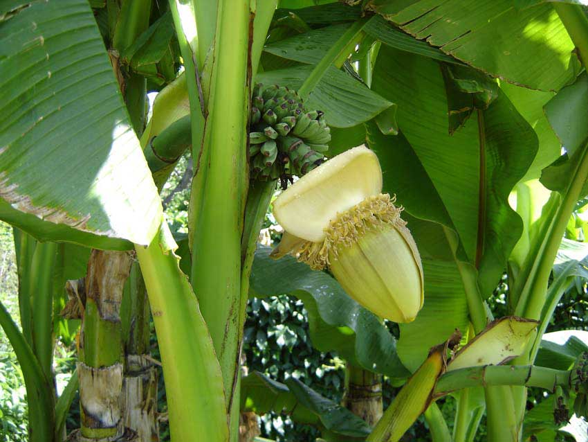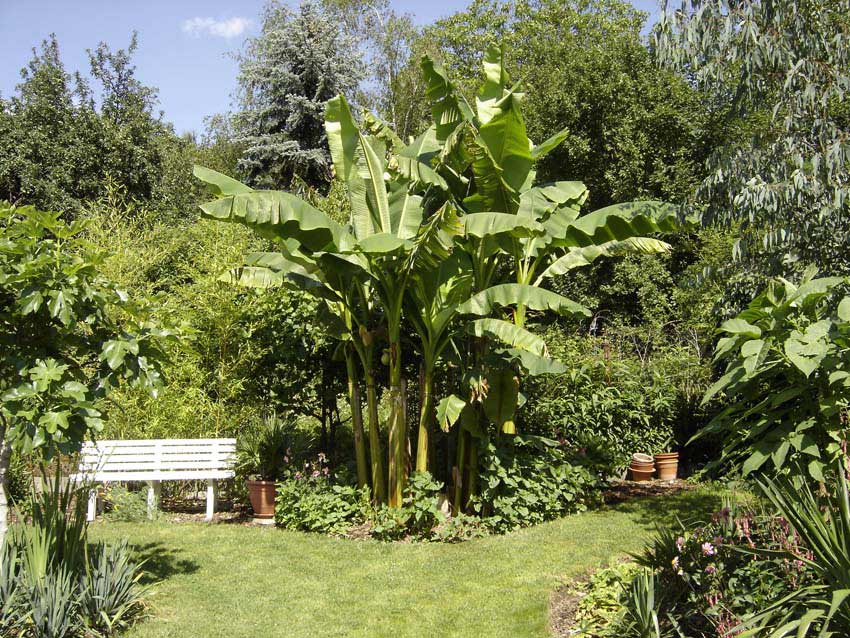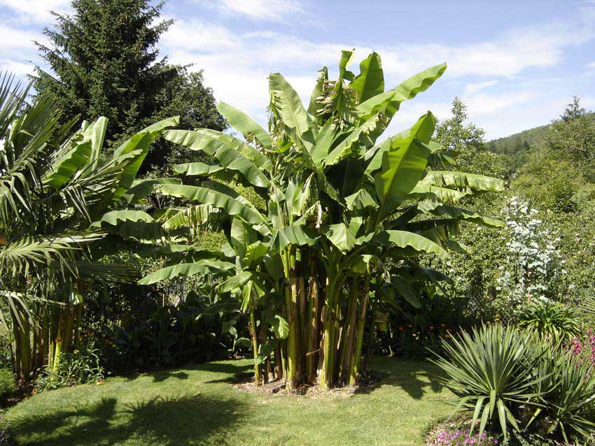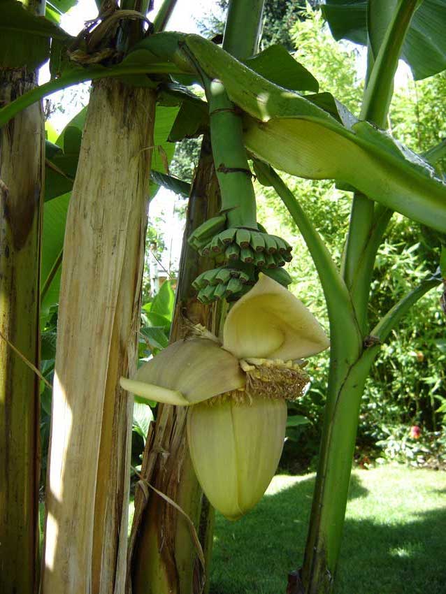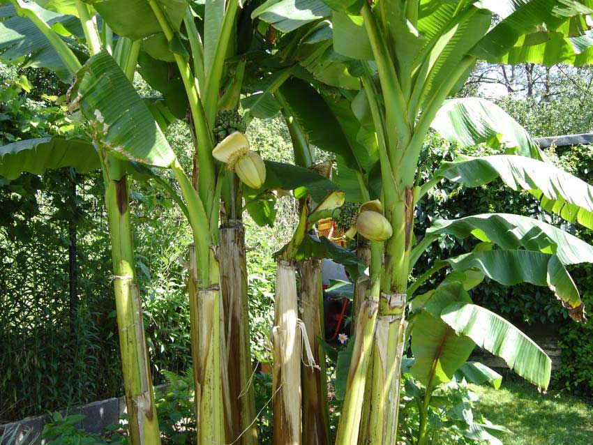 Meine drei Basjoo-Horste mit jeweils ca.3m Gesamthöhe und ihre Fruchtstände.