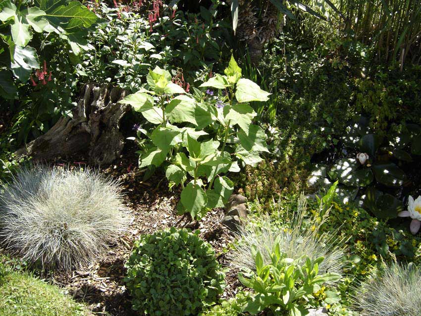 Cordyline australis hat auch ihren dritten Winter schadlos überstanden und nun eine Gesamthöhe von 2,5m erreicht.