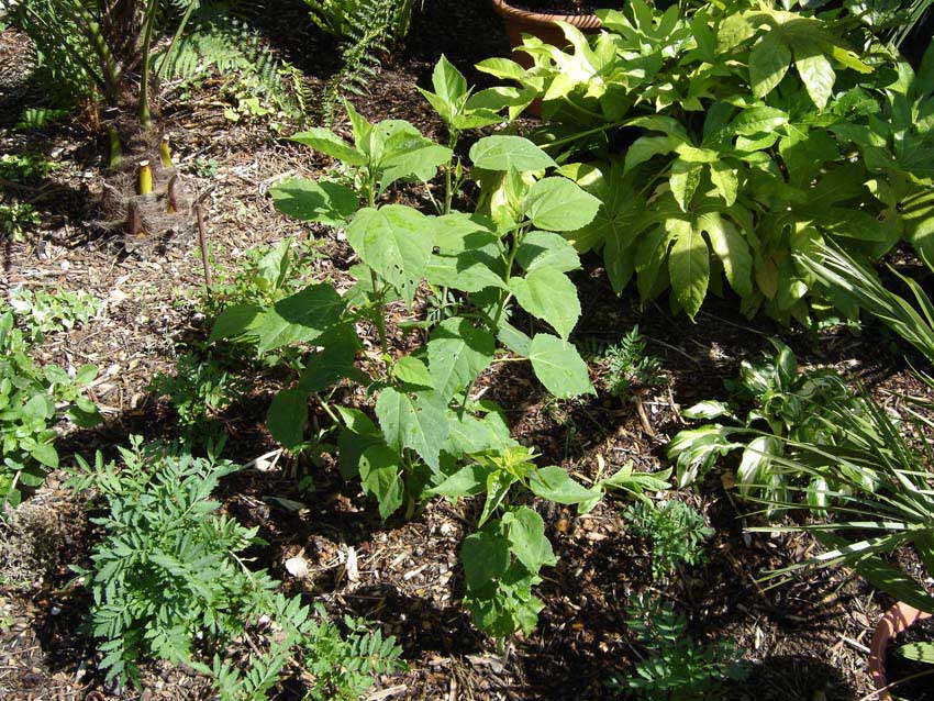 Hibiscus moscheutos legt auch gut los.
