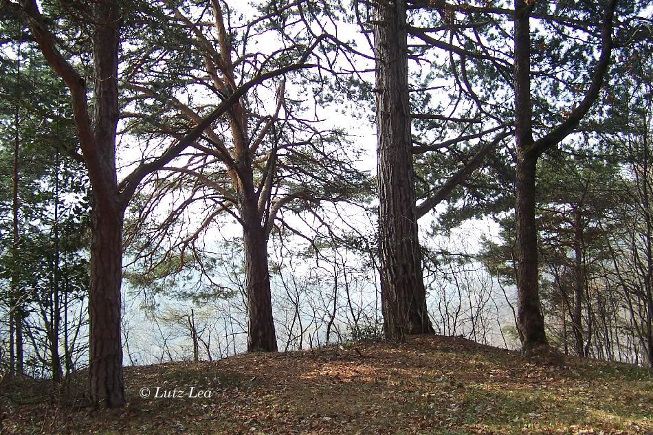 Mächtige Alt-Kiefern im Bereich der zuvor gezeigten (Teil 16) Wegmarkierungen (Schilder).