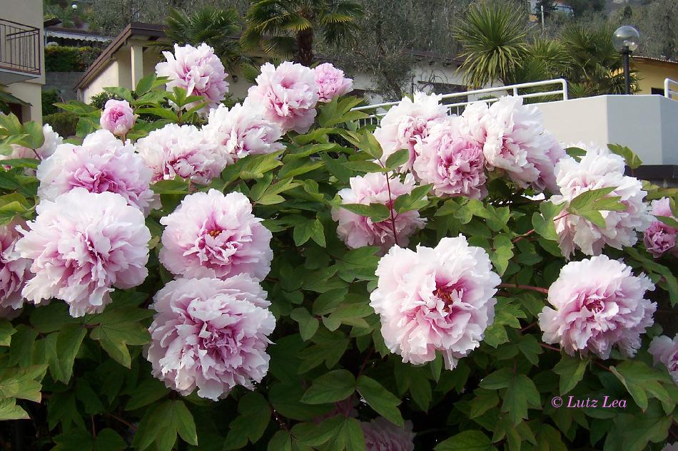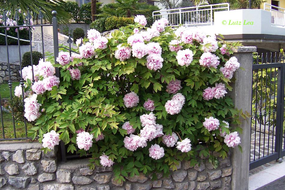 Ein besonders üppig blühender Pfingstrosenbusch.