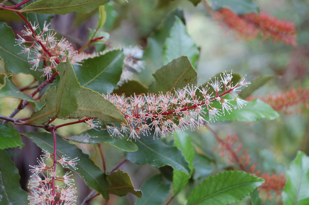 nicht nur in Südamerika gibt es Weinmannia-Arten, diese rötlich blühende ist /*Weinmannia racemosa*/
