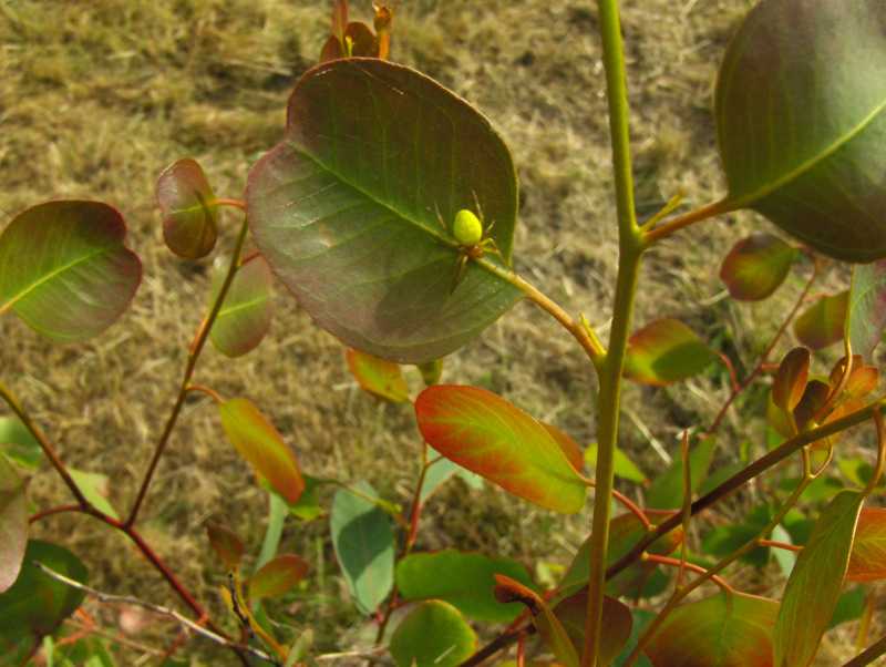 Ein Gast in passender Farbe.(Habe noch nie so eine grüne Spinne gesehen).