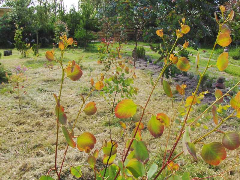 Euc. globulus hat echt grosse Blätter. Er nähert sich im zweiten Jahr der DAchrinne und damit den 3 m.