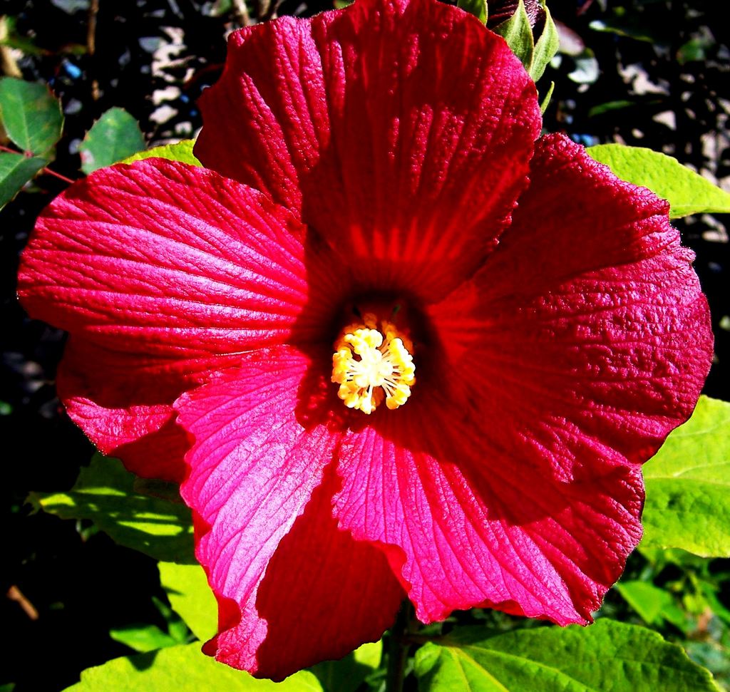 /*Hibiscus moscheutos*/ ebenfalls in dunkelrot, Typ aus Ungarn, verträgt vermutlich etwas trockener