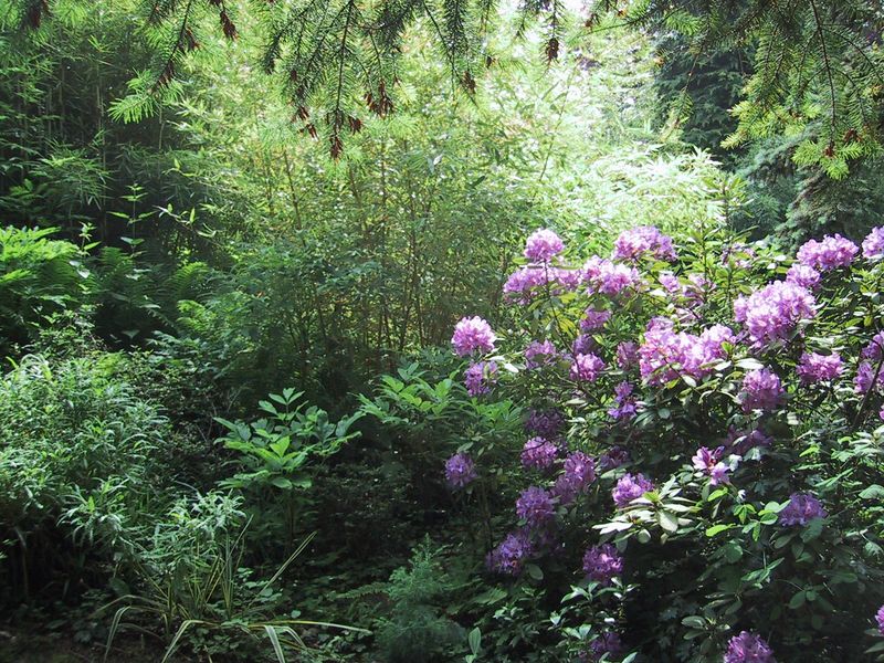 Etwas Dschungel-Atmosphäre mit Comtonia peregrina li,Fargesia robusta u. Matteuccia str. hi li u. Rhodod.re