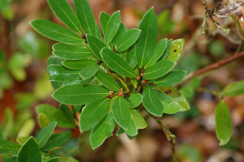 /*Distylium myricoides*/ beginnt mit ihren kl. rötl. Blütenständen zu erblühen