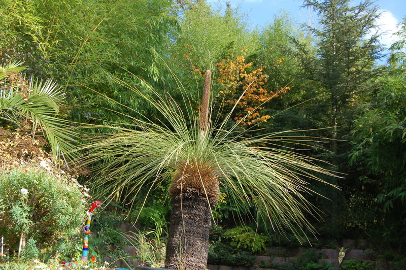 /*Xanthorrhoea australis*/ vor Cedrus brevifolia u. Parrotia persica, einfach ein Prachtstück (allerdings immer noch im Kübel!!!!!)