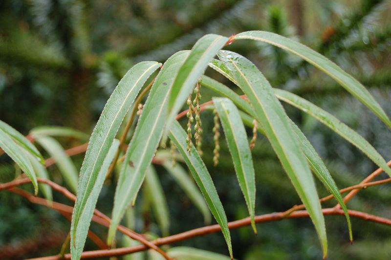 /*Stachyurus salicifolius*/ hat zwar etwas unscheinbare Blüten aber absolut exotisch wirkende Blätter!!
