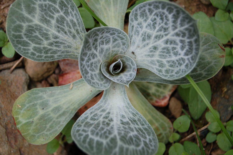 die monocarpe /*Aeonopsis capulica*/ besticht im Xerophytenbeet durch ihre wunderschöne Blattzeichnung