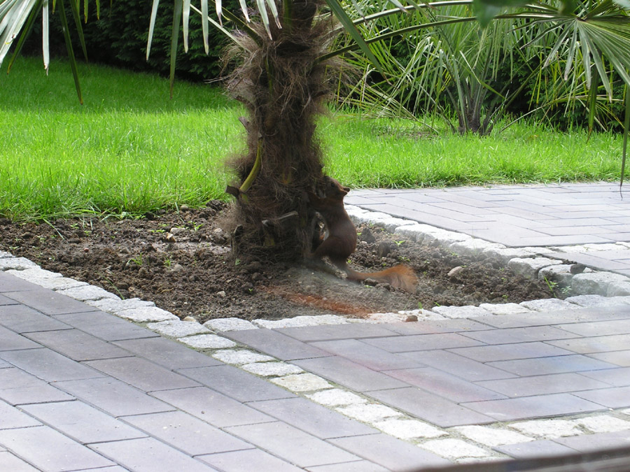 Er klettert auch ganz rauf und balanciert schwanzwedelnd auf den Blättern herum, aber dafür reicht mein Webspace nicht.