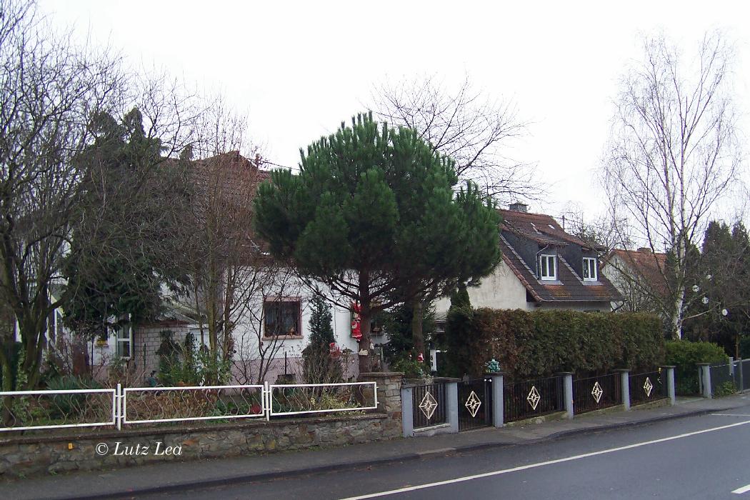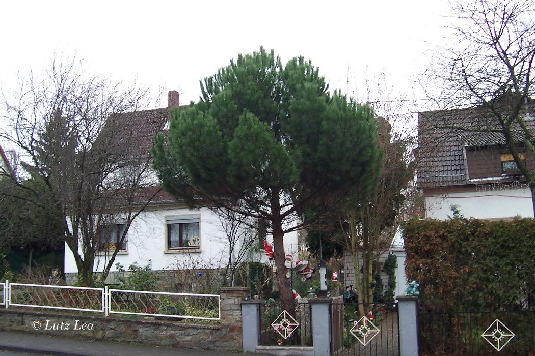 eine seit mindestens 1961 ausgepflanzte Mittelmeer-Pinie 'Pinus pinea' habe ich heute in Wiesbaden im Ortsteil Bierstadt, in der Nauroder Straße 69 (B455) in einem Vorgarten am Zaun entdeckt und fotografiert.