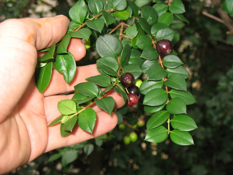 dicke Beeren bei /*Luma apiculata*/ der Chilenischen Baummyrte. Bin gespannt wie sie schmecken - und genau so gespannt ob die Pflanze über Winter durchhält. Wenn ich an die großen Exemplate auf der Isola Madre denke..., wär schon ein Hammer, der aber leicht den kleinen Garten erschlägen könnte (optisch natürlich!)