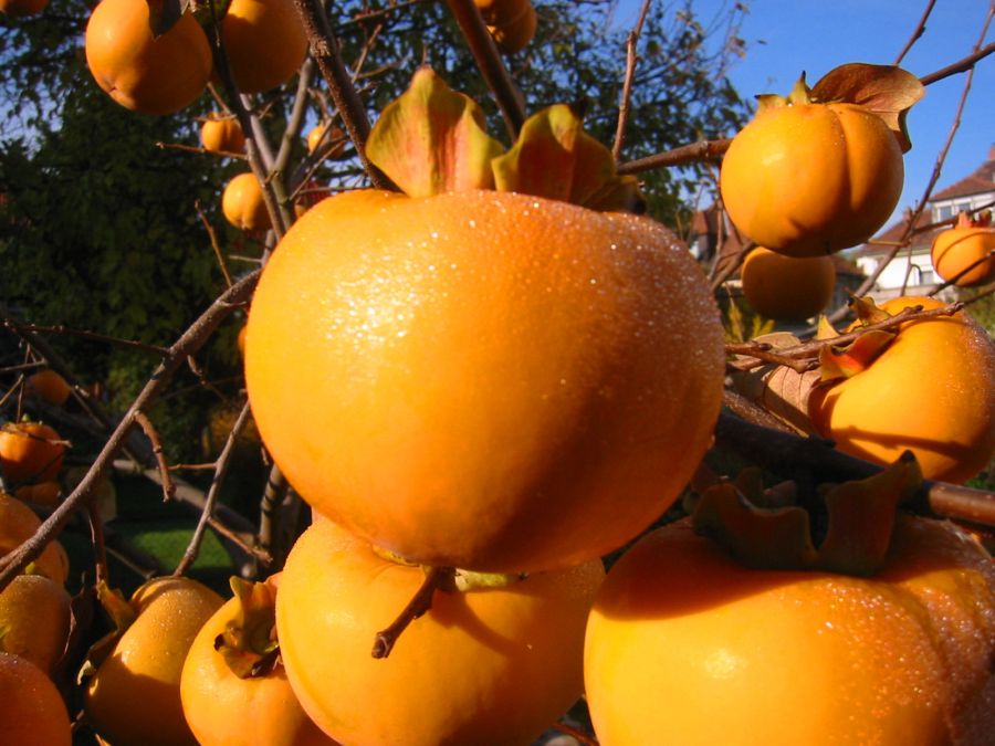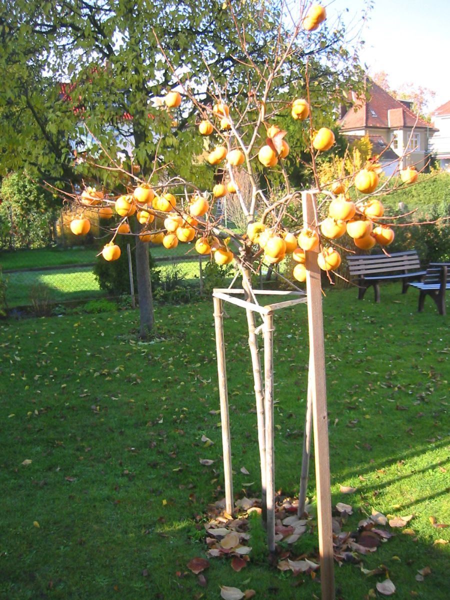 Seit 2000 gepflanzter Kaki mit reichlichem Fruchtbehang(Herkunft Riva)