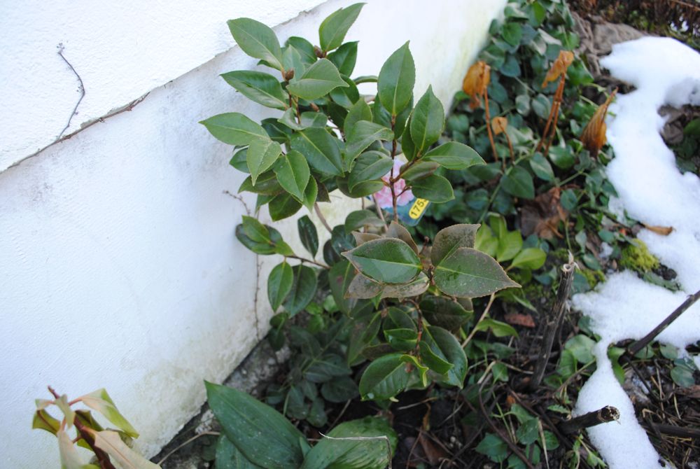Pittosporum heterophyllum war im Vorjahr fast bis zum Boden abgefroren und hat sich gut regeneriert. Noch schaut er gut aus, aber der Winter ist noch nicht zu Ende