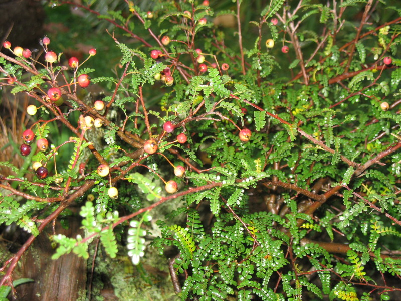 nach und nach reifen die Früchte von Osteomeles subrotunda, einem kleinblättrigen Gehölz aus Asien