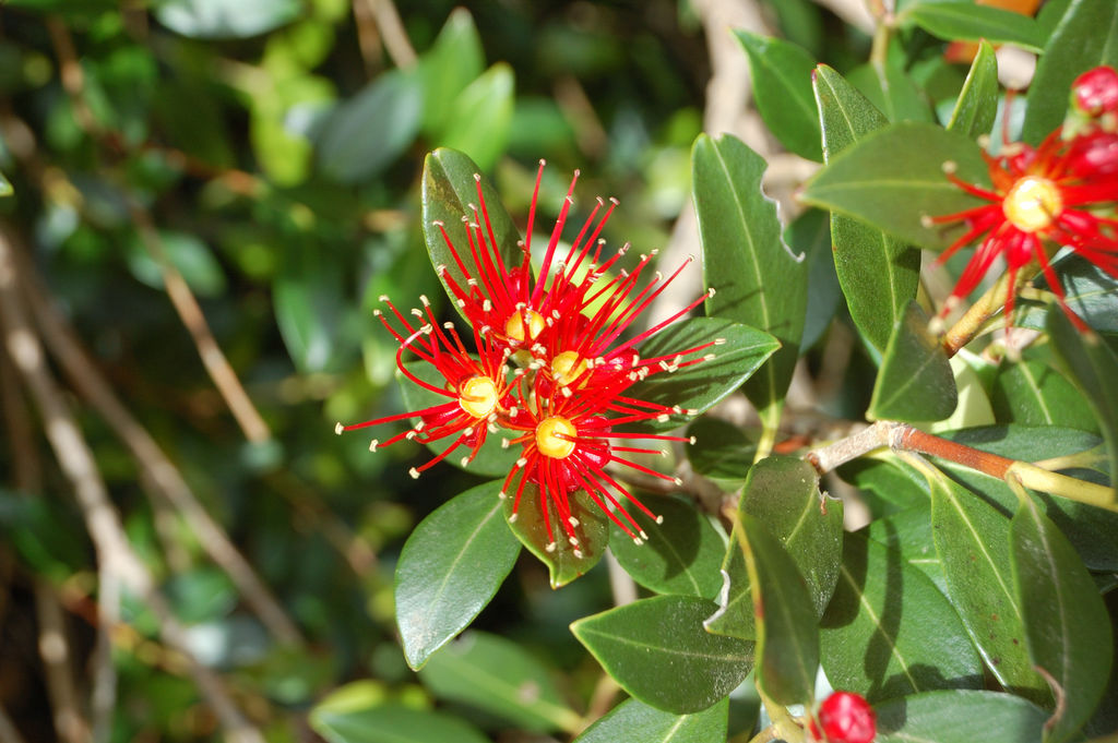 in Cornwall schon erfolgreich ausgetestet, hier wahrscheinlich zu empfindlich, der wunderschöne /*Metrosideros umbellata*/