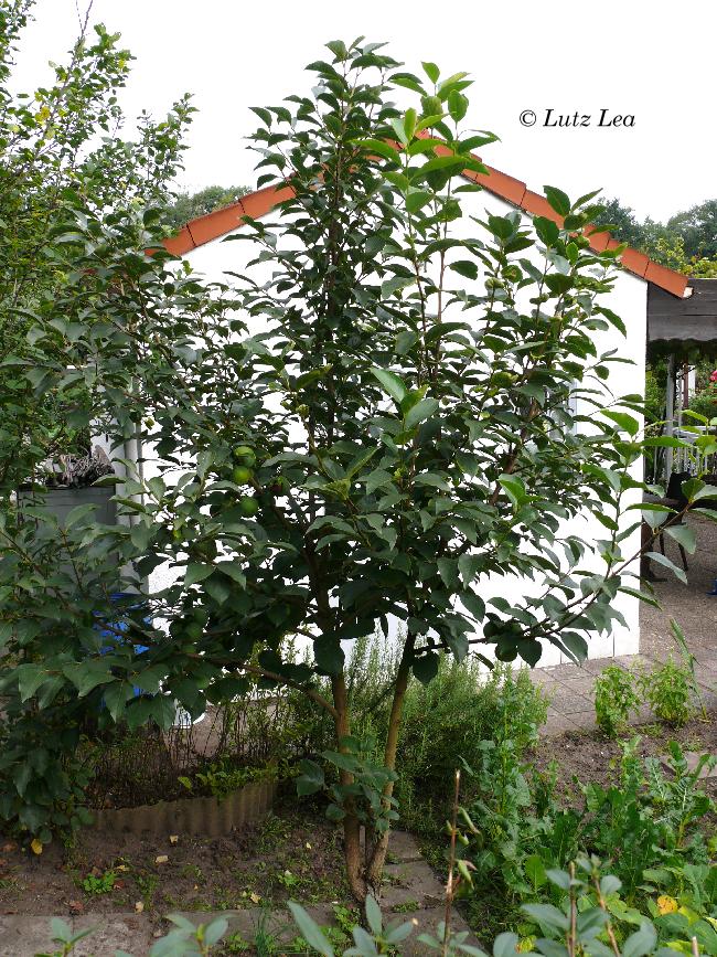 Der Kaki-Baum rechts im Bild soll nach Auskunft eines Parzellennachbarn 35-40 Jahre alt sein. Links im Bild gedeiht eine Quitte.