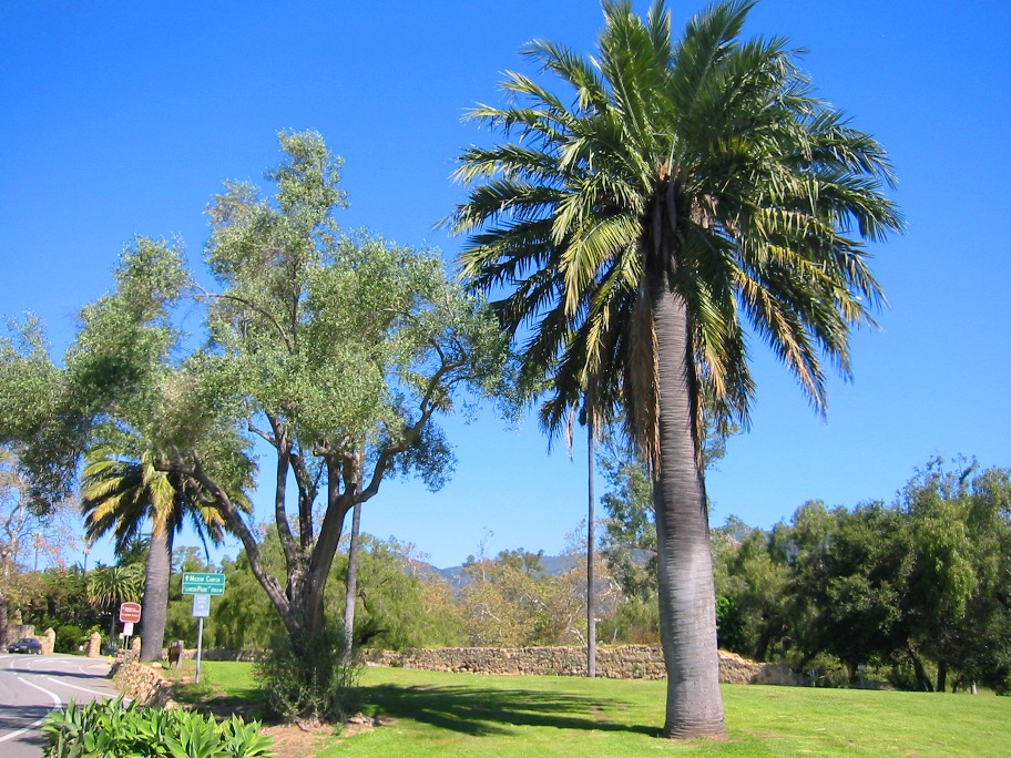Diese Jubaea und eine zweite in der Nähe, wurden angeblich laut den Anwohnern in der Zeit 1784 bei der Gründung der Mission von Santa Barbara von Spaniern gepflanzt!