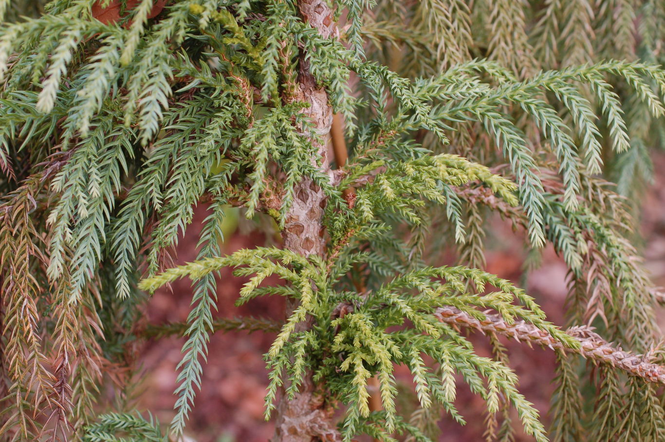 15. bei /*Taiwania cryptomerioides*/ ist deutlich zu erkennen, je älter (nach oben hin, beim älteren Baum) die Blätter, desto kleiner!!#AM