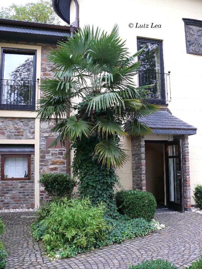 erstmals vorgestellt am 2.07.2005 hatte ich eine ganz interessante Trachy-Auspflanzung im Park der Burg Schwarzenstein bei Geisenheim im Ortsteil Johannisberg: http://trachy.eu/cgi-bin/archiv.cgi?function=2&index=D0E48B07C7C98657. Vor kurzem war ich wieder mal dort (22.08.2007) und habe neue Bilder gemacht. Da die Angestellten und Verwalter der Burg und des Restaurants sehr auskunftsunfreudig waren und sind (dies ist bei meinen Recherchen eher die Ausnahme), kann ich wenig über die Auspflanzaktion sagen. Im Thread vom Juli 2005 (Link siehe oben steht so ziemlich das Wichtigste). Dennoch war ein neuer dort arbeitender junger Gärtner sehr nett und möchte in Zukunft noch weitere Exoten auspflanzen. Eine größere Olive die ich leider nicht aufgenommen habe, gedeiht dort bereits vor der Burg seit etwa einem Jahr.