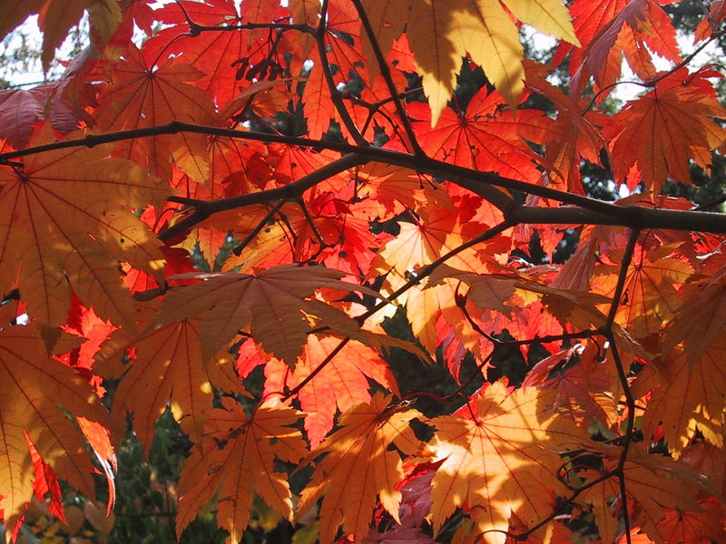 Wunderschön erscheinen z.Zt. die leuchtenden Farben von /*Acer japonicum Vitifolium */, einem der schönsten ostasiat. Ahorne