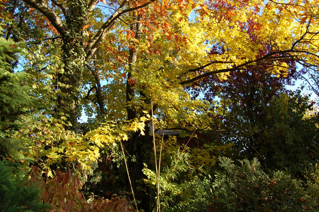 Neben dem goldgelben einheimischen Feldahorn, prunkt rotbraun /*Quercus rubra*/ aus den USA auf.(eine der typ. Bäume zusammen mit Q.coccinea,Q.velutina u.v.a., die für den "Indian Summer" zuständig sind!)AM#