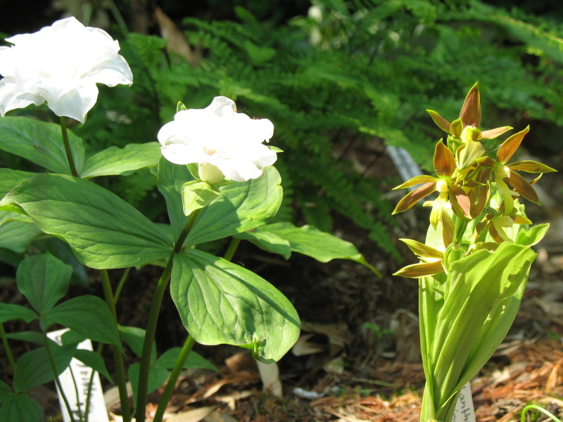 Calanthe alpina mit Trillium grandiflorum 'Plena'. C. alpina und C. oblanceolata hatte ich im März 08 auf der Raritätenbörse im Palmengarten Frankfurt erworben und fand bei anschließender Recherge überall nur "Nicht Winterhart"!![]()